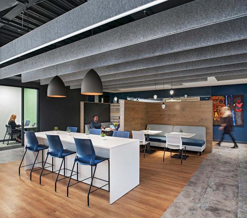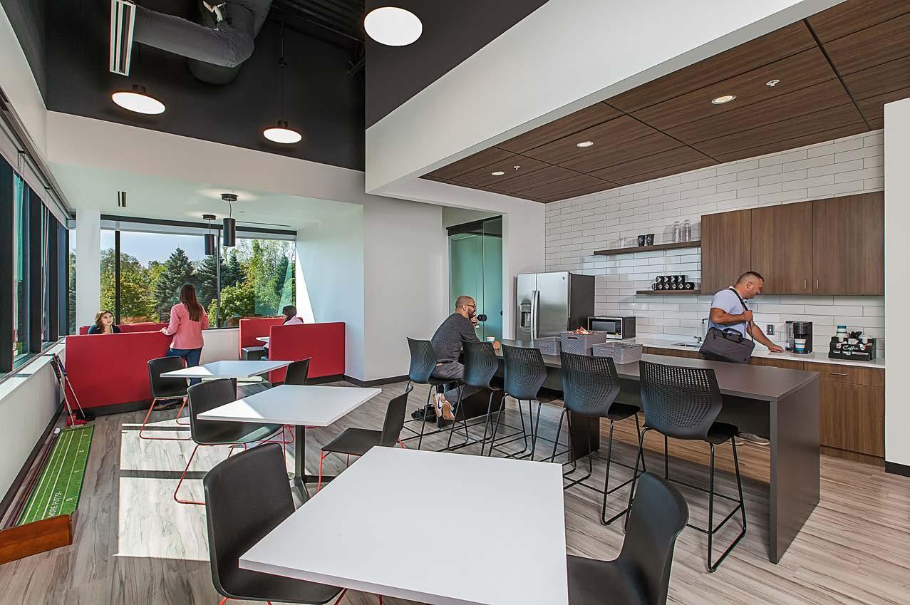 Centria, a leading provider of autism services, applied behavior analysis (ABA) therapy, pediatric nursing, and catastrophic injury care, employs nearly 3,500 full- and part-time professionals across the Nation. Centria leased a 90,000-square-foot, multi-level building in Farmington Hills to convert into their new administrative and support offices. The design is contemporary and minimal with low, collaborative workstations and amenity spaces such as a large cafe, break areas, and game room integrated throughout. The design intent aims to attract and retain talent with a comforting color palette and materials and strategically located open group spaces to encourage usability.