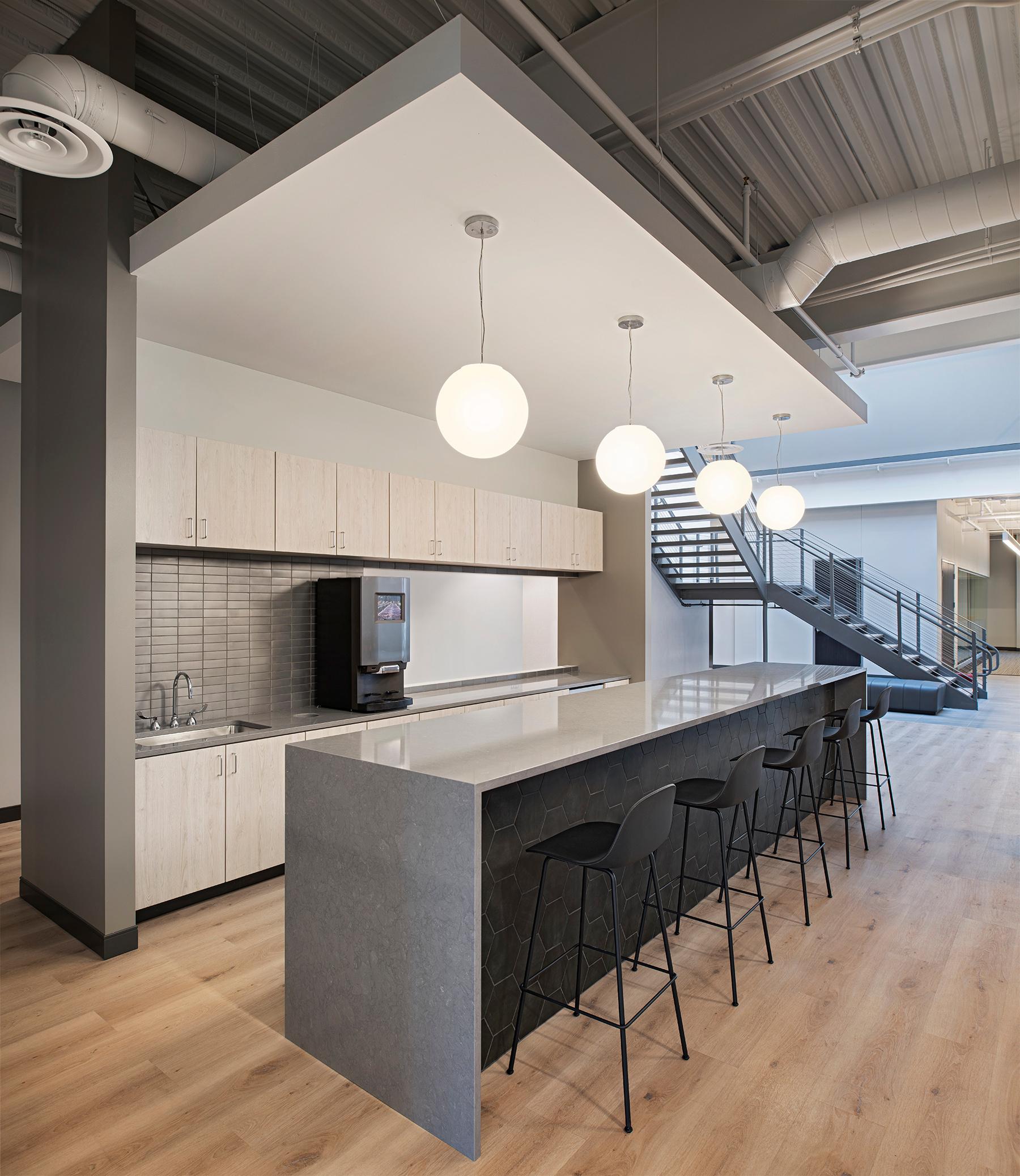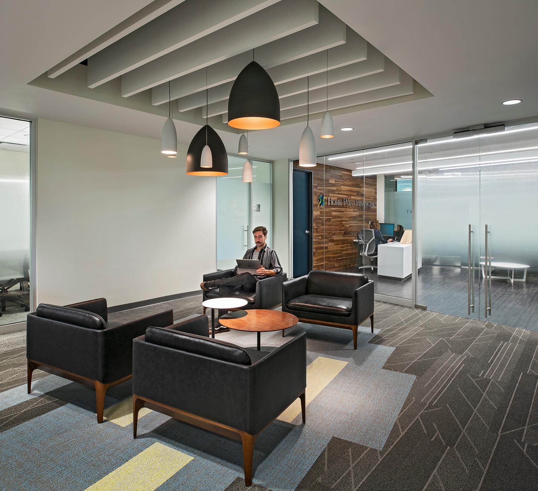 The open office environment consists of a mix of scaled environments for different work styles to echo Home Point’s collaborative, transparent work culture. Hobbs+Black used design principles based on the latest work space design research to provide flexible, modern solutions to accommodate 15-20 enclosed offices, IT/storage spaces, several conference rooms, and work/break rooms.