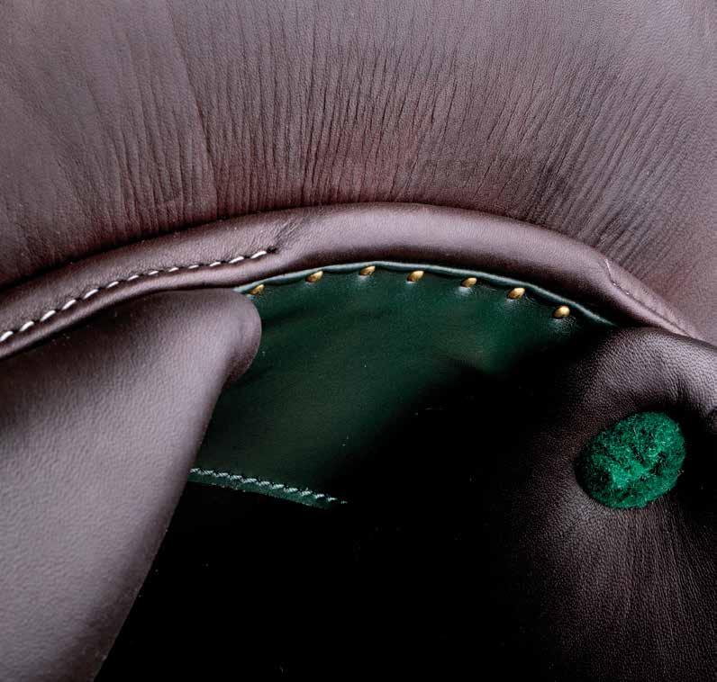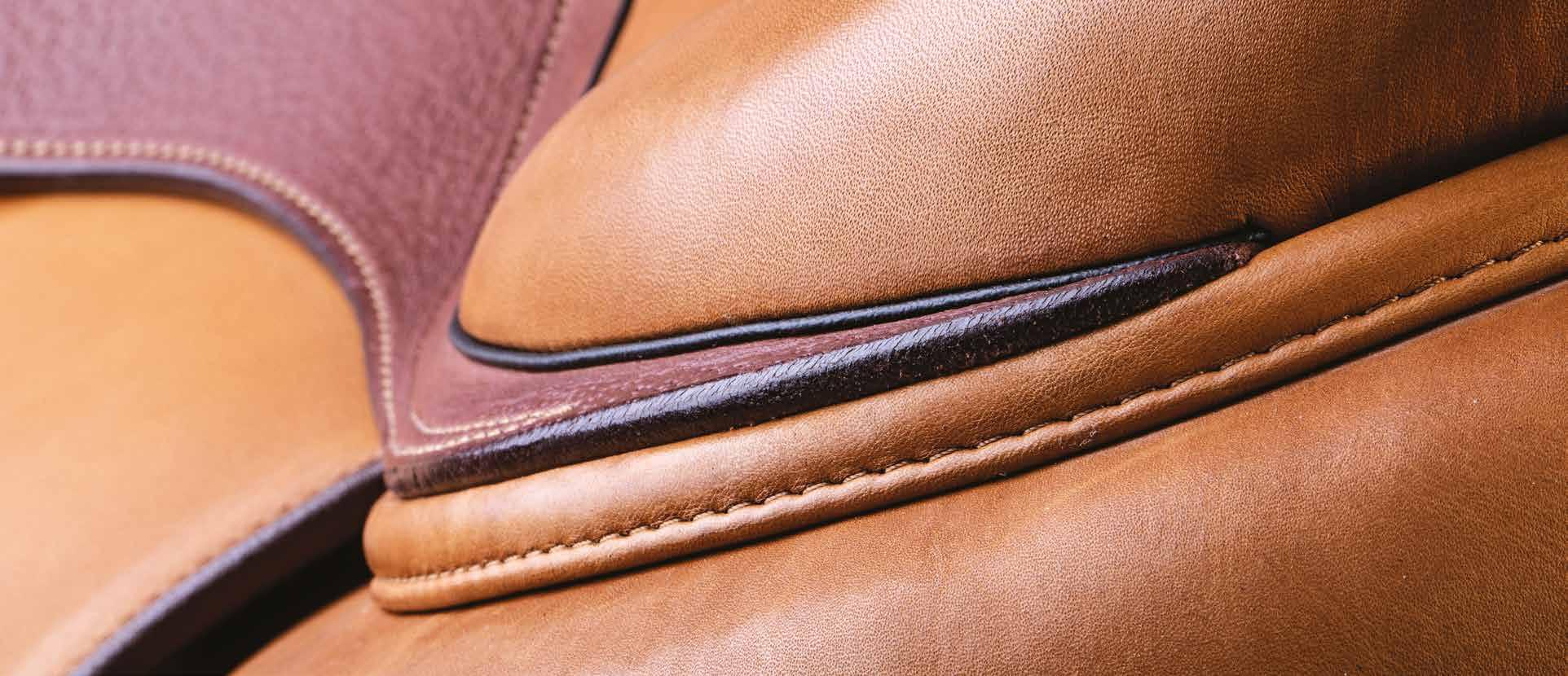 The double layer Mascheroni saddle. Super soft seat with two double layers leather panels.