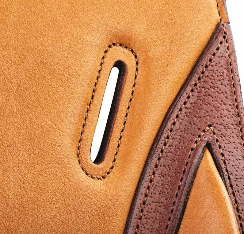 Selected calf skins, in different natural colors, underline the sophistication of this new line of classic saddles but also by innovative details.