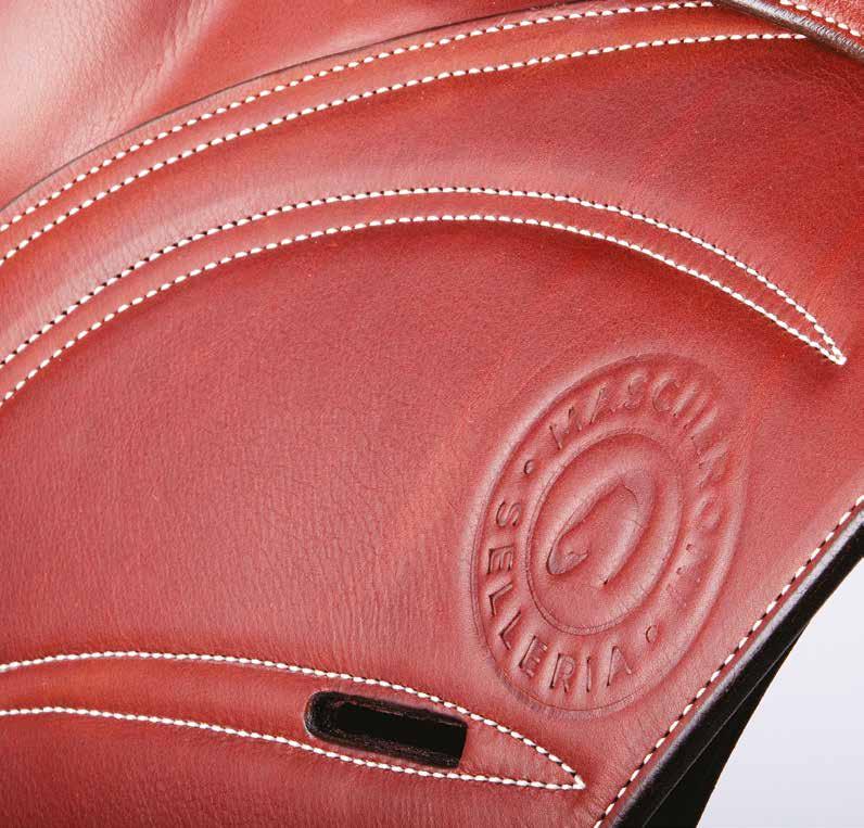 The Mascheroni Selleria Pro-team saddle. Light and performing, this saddle is the one used and improved directly by our team athletes. Perfect for show-jumping purposes and made with very accurate leg contact.