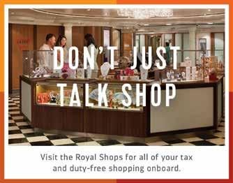 It’s your last chance to pick up stunning fine jewelry from the Royal Shops. Explore a varied collection of jewelry designs for up to 75% of and enjoy tax & duty free savings. 10:00 am, Facets Jewelry Shop, Deck 6.