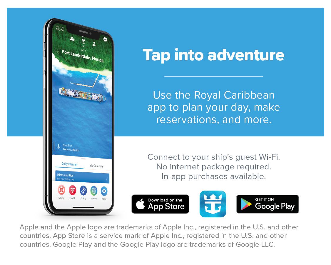 Download the Royal Caribbean app on your phone to conveniently access your Daily Planner to plan your days onboard and make Dining and Shore Excursion reservations.