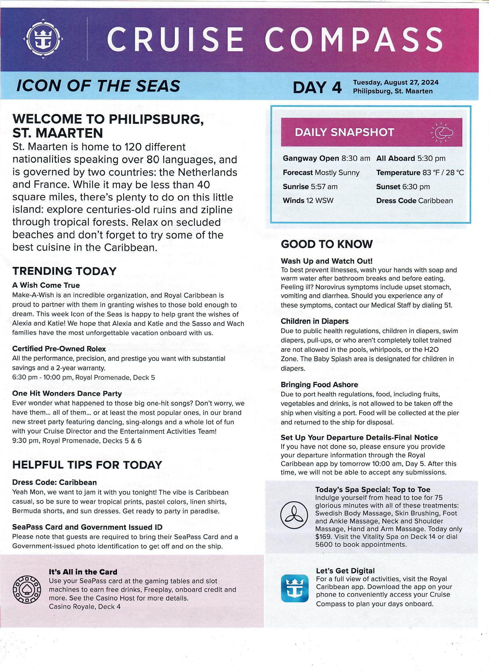Icon of the Seas 7-night Eastern Caribbean and Perfect Day Cruise Compass - August 24, 2024