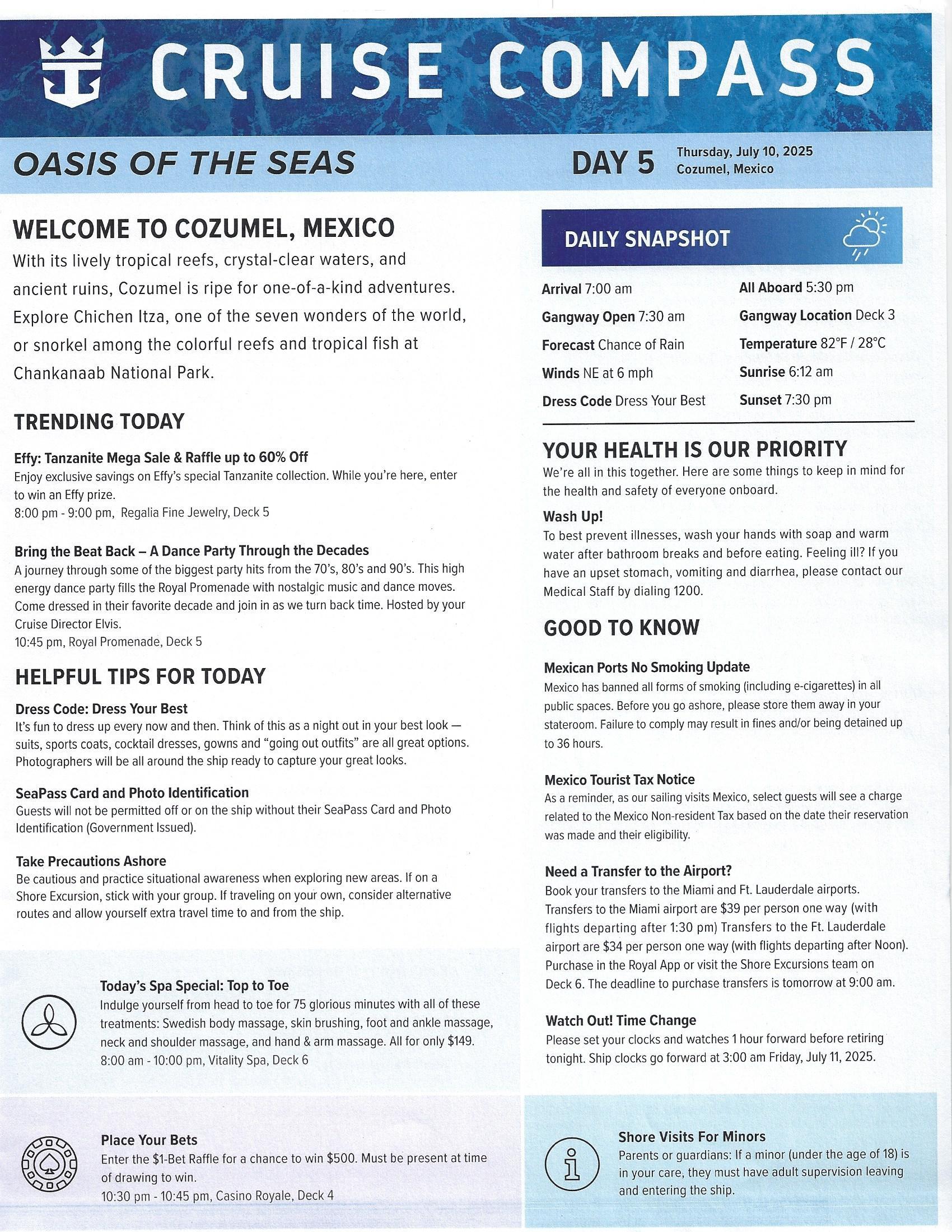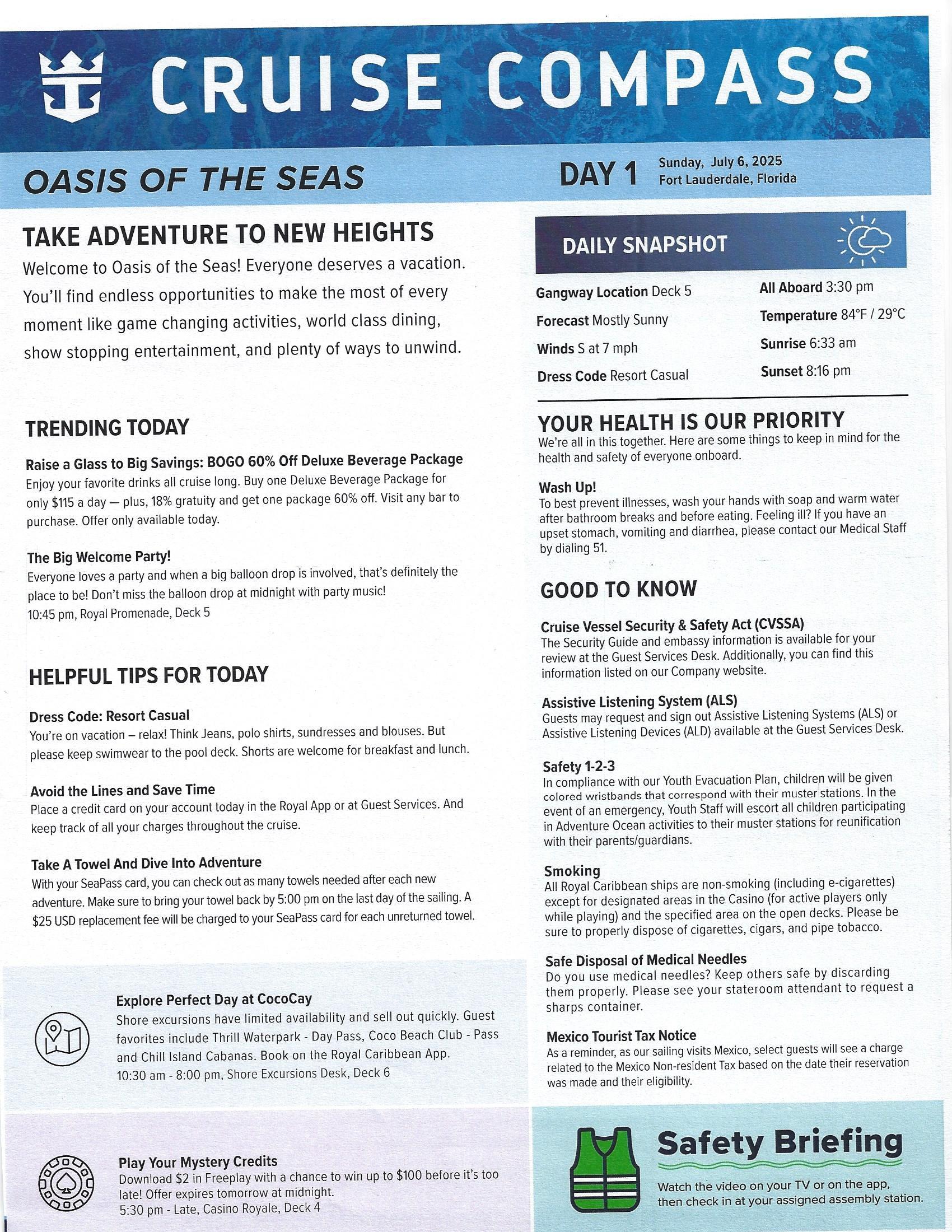 Oasis of the Seas 6-night Western Caribbean and Perfect Day Cruise Compass - July 6, 2025