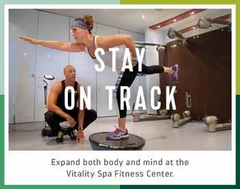 The Medi-Spa offers targeted wrinkle treatments, non-surgical brow lifts, volumizing skin treatments, and lip enhancements. Visit the Vitality Spa reception or dial 4600 for more information.