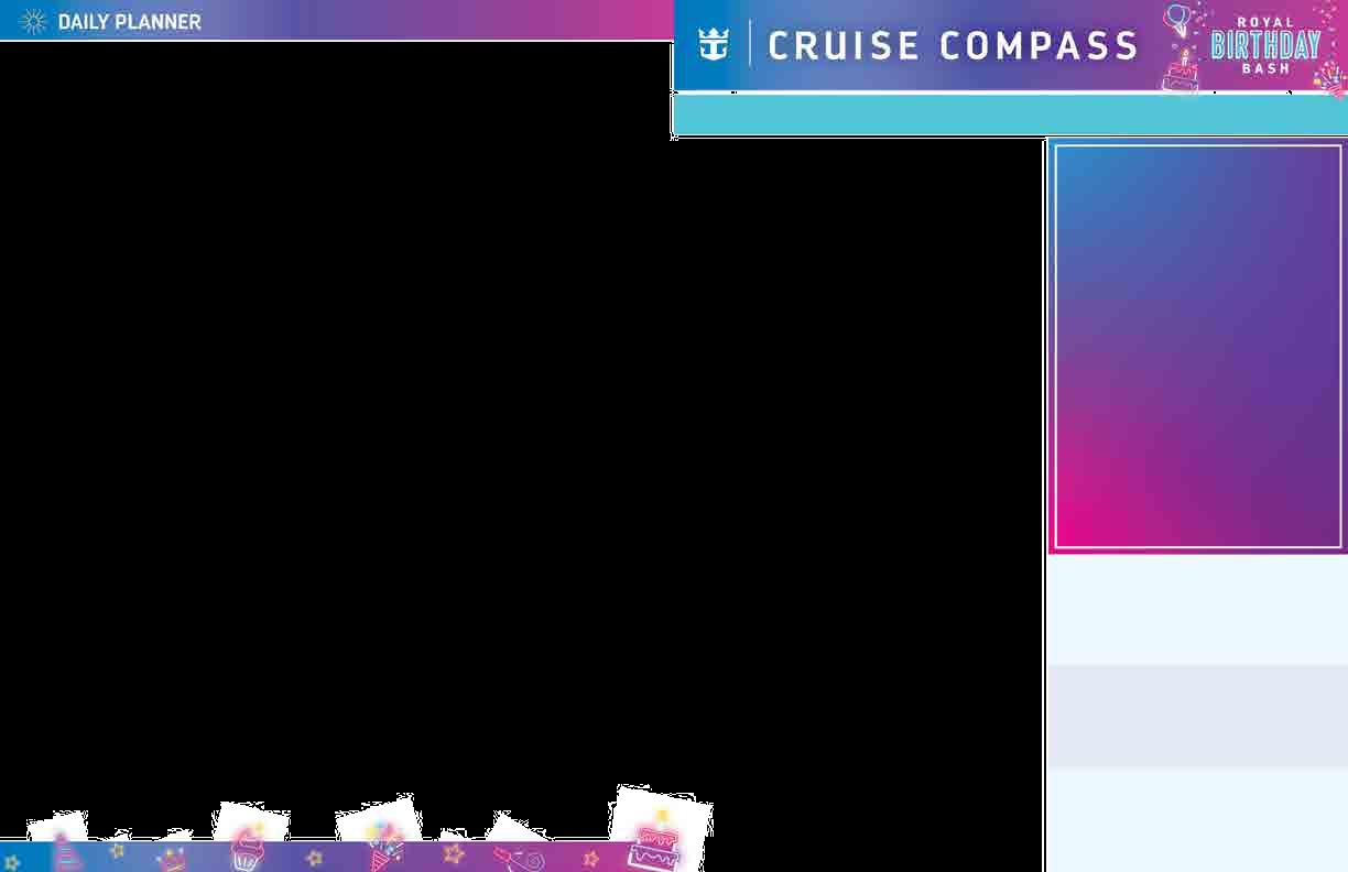 For a full view of what’s happening around the ship and hours of operation, visit the Royal Caribbean App.