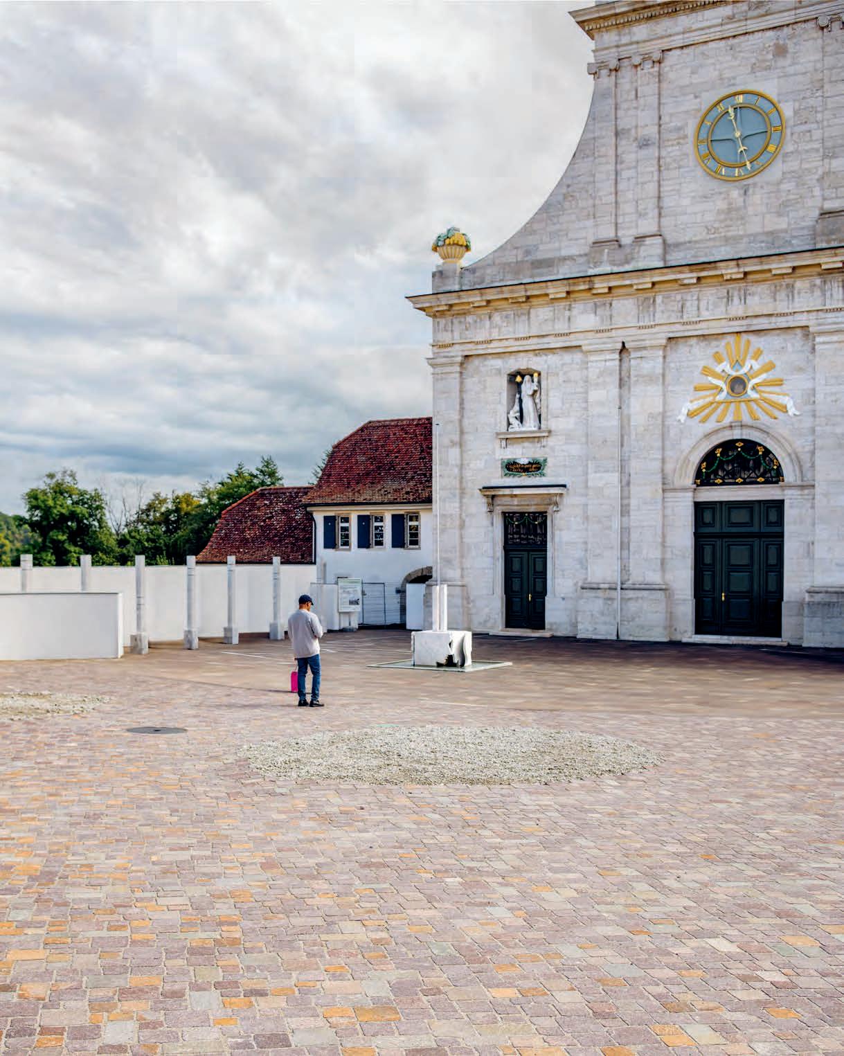 Auf dem neuen Klosterplatz führt präzise gelegtes Pflaster zur Kirche