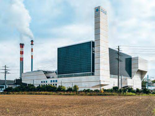 In der Schweiz stehen derzeit 29 Kehrichtverwertungsanlagen ( KVA ). Manche stehen mitten in dicht b esiedelten Stadtgebieten, andere in idyllischen Flusslandschaften oder am Fuss von hoch aufragenden Bergen, wieder andere in Industriegebieten der Agglomerationen. Die KVALandschaft ist also ein Spiegel der Schweizer Landschaft –und befindet sich im Umbruch. Der Erneuerungsbedarf ist gross. Viele Kehrichtverwertungsanlagen wurden in den 1960er- und 1970er-Jahren errichtet. Diese Bauten haben nun ihr Lebensende erreicht. Die Technik genügt den heutigen Ansprüchen nicht mehr, die elektromechanischen Komponenten sind veraltet und toxisch. Zudem stossen viele der älteren Anlagen an Kapazitätsgrenzen. Die schrittweise Erneuerung der Schweizer Kehrichtverwertungsanlagen hat bereits begonnen: Ein weitherum beachtetes Flaggschiff der neuen Generation von Anlagen ist die 2011 in Betrieb genommene Energiezentrale Forsthaus in Bern siehe ‹ Das Pionierprojekt › Seite 8, die die KVA Warmbächli aus den 1950er-Jahren ersetzt hat. Es folgten neue Anlagen in Perlen siehe ‹ Reptil im Rippenmantel ›, Seite 10 und Zuchwil siehe ‹ Monumentale Energiekathedrale ›, Seite 12