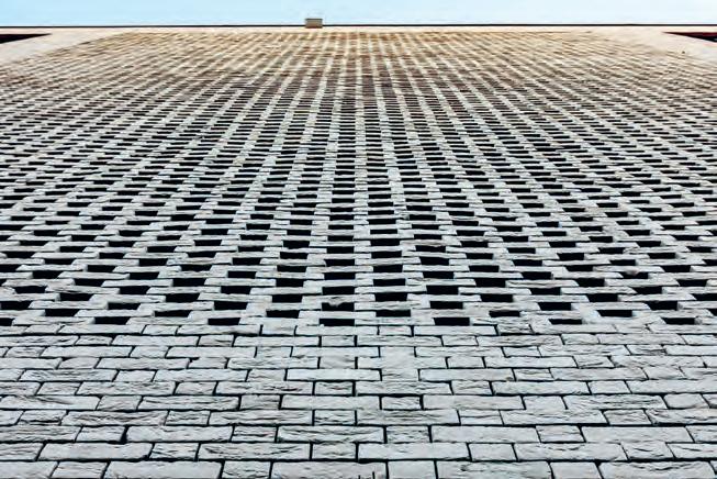 Zugabe grauer Sande auf der Oberfläche entsteht der gewünschte Farbton. Die charakteristische Maserung der Sichtfläche ergibt sich aus dem Zusammenspiel von Besandung und dem Werfen des Tonballens in die Form. Jeder Stein ist ein Unikat und verleiht der Fassade einen lebendigen, natürlichen Charakter. Integriert in die Riemchenfassade, wurden im Treppenhaus der Schule auch Vollsteine im Lochverband verwendet, was in diesem Bereich zusätzliches Licht ins Gebäude bringt. Das sanierte Ensemble wurde vom Hochbauamt des Kantons Basel-Landschaft mit dem Standard Nachhaltiges Bauen Schweiz (SNBS) ausgezeichnet. Auf dem begrünten Dach steht eine Photovoltaikanlage, und im gesamten Bau hat man auf natürliche Materialien gesetzt. «Unsere Kundschaft vertraut auf unsere ökologischen Produkte», erklärt Reto Aregger und verweist damit auf eine weitere Qualität des Baustoffs Ton. 0