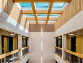 Ein Oberlicht bringt den Tag in den Erschliessungskern eines Schulhauses in Dürnten. Damit entsteht nicht nur ein gut beleuchtetes Lernumfeld, sondern auch ein atmosphärisch inszenierter Raum.