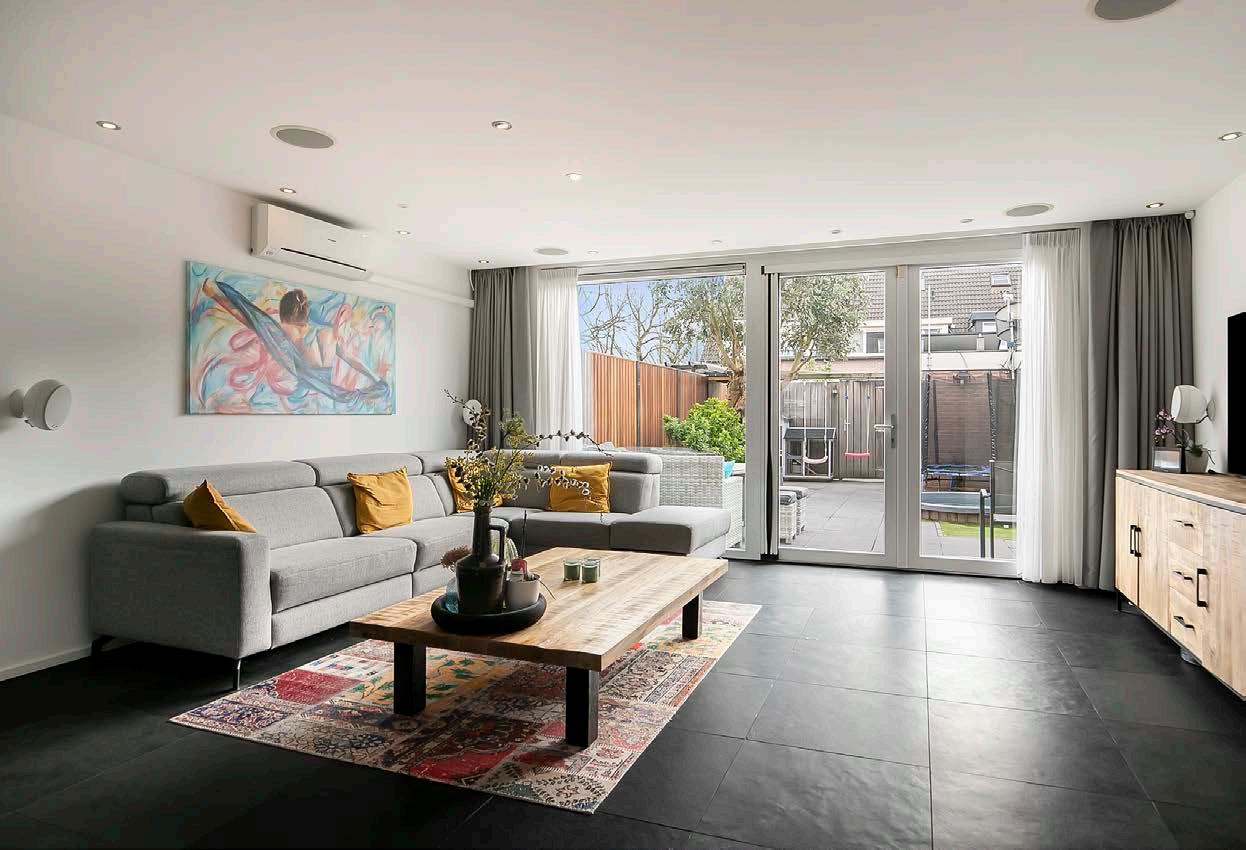 De woonkamer straalt een knusse ambiance uit door de gashaard, terwijl je voeten heerlijk warm blijven door de vloerverwarming. Zelfs tijdens warme dagen biedt deze woning comfortabel onderdak dankzij de airconditioning die door het hele pand is geïnstalleerd. De strak gestucte wanden en plafonds zijn een genot voor het oog, met inbouwverlichting en speakers die zorgen voor een kraakhelder geluid. Op warme zomerdagen kun je eenvoudig binnen en buiten met elkaar verbinden door de openslaande deuren volledig te openen. Heb jij al enig idee hoe je de ruimte gaat indelen?