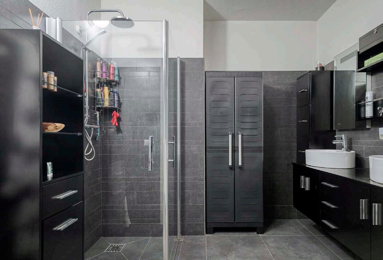 De badkamer voelt aan als een persoonlijke spa. De ruime inloopdouche en de dubbele wastafel garanderen dat je hier nooit ruimte tekort komt, zelfs niet als jullie je ochtendroutine tegelijk willen uitvoeren. De materialen, het moderne design –alles ademt luxe.