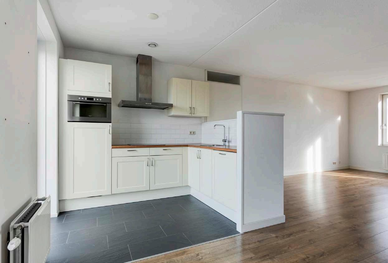 De woonkamer is heerlijk licht dankzij de raampartijen en het Frans balkon, die zorgt voor wat frisse lucht of verkoeling op zomerse dagen. De nette afwerking en goede staat van het appartement geven een frisse, moderne uitstraling. Een fijne plek waar je je direct thuis voelt.