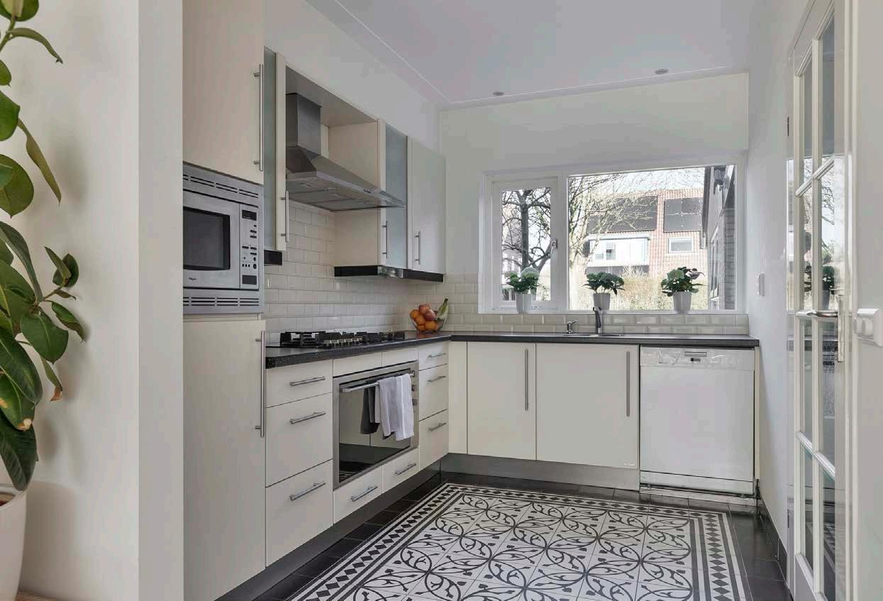 De open keuken is functioneel ingericht, met een 5-pits gasfornuis, afzuigkap, grote oven en vaatwasser. Deze keuken grenst aan de woonkamer en via een hardhouten schuifpui met HR++ glas bereik je de achtertuin. De keuken biedt voldoende ruimte en voorzieningen voor dagelijkse maaltijdbereiding en gezinsactiviteiten.