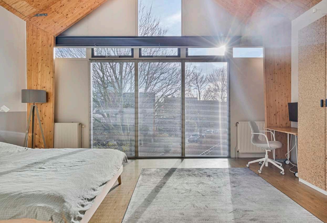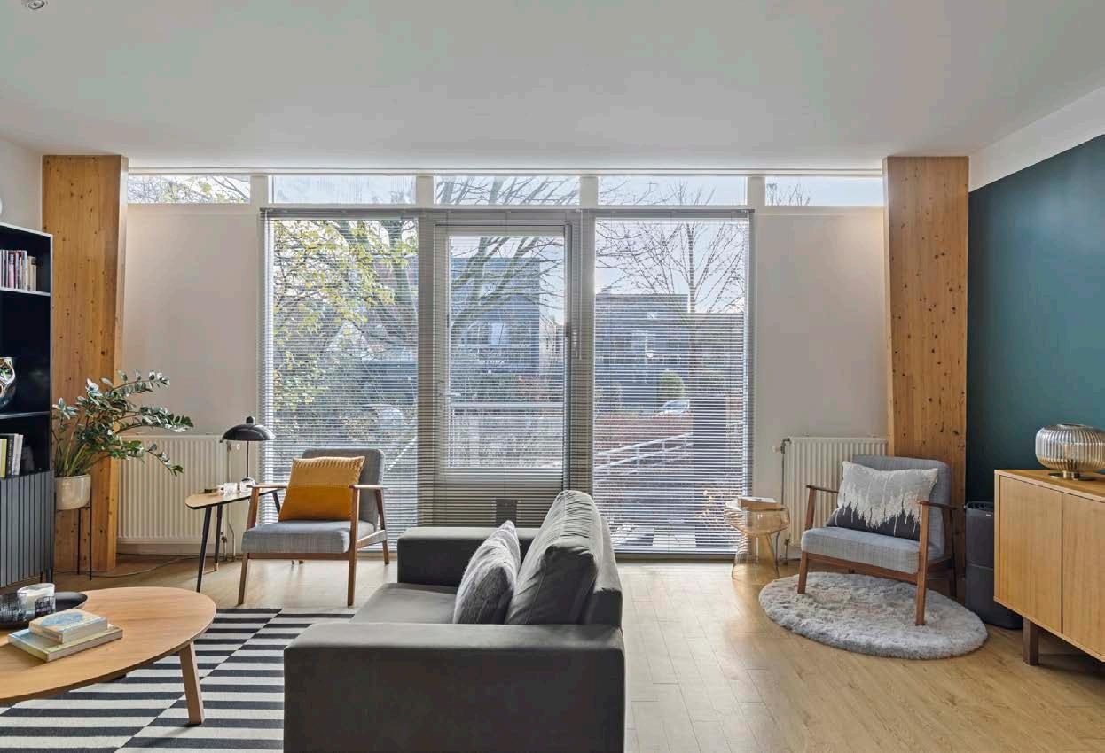 Wat voor ons vanaf het begin echt onderscheidend was, zijn de grote glazen puien aan de achterzijde. Dankzij het vele daglicht voelt de woning op elk moment van de dag open en warm aan. Boven zorgen de hoge, open plafonds voor een indrukwekkend ruimtelijk gevoel en prachtige lichtval – iets waar we iedere dag opnieuw van genieten.