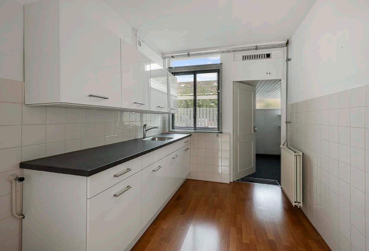 De keuken, klassiek én functioneel, vormt het hart van de woning. Hier kun je heerlijk koken terwijl je uitkijkt op je eigen zonnige achtertuin.
