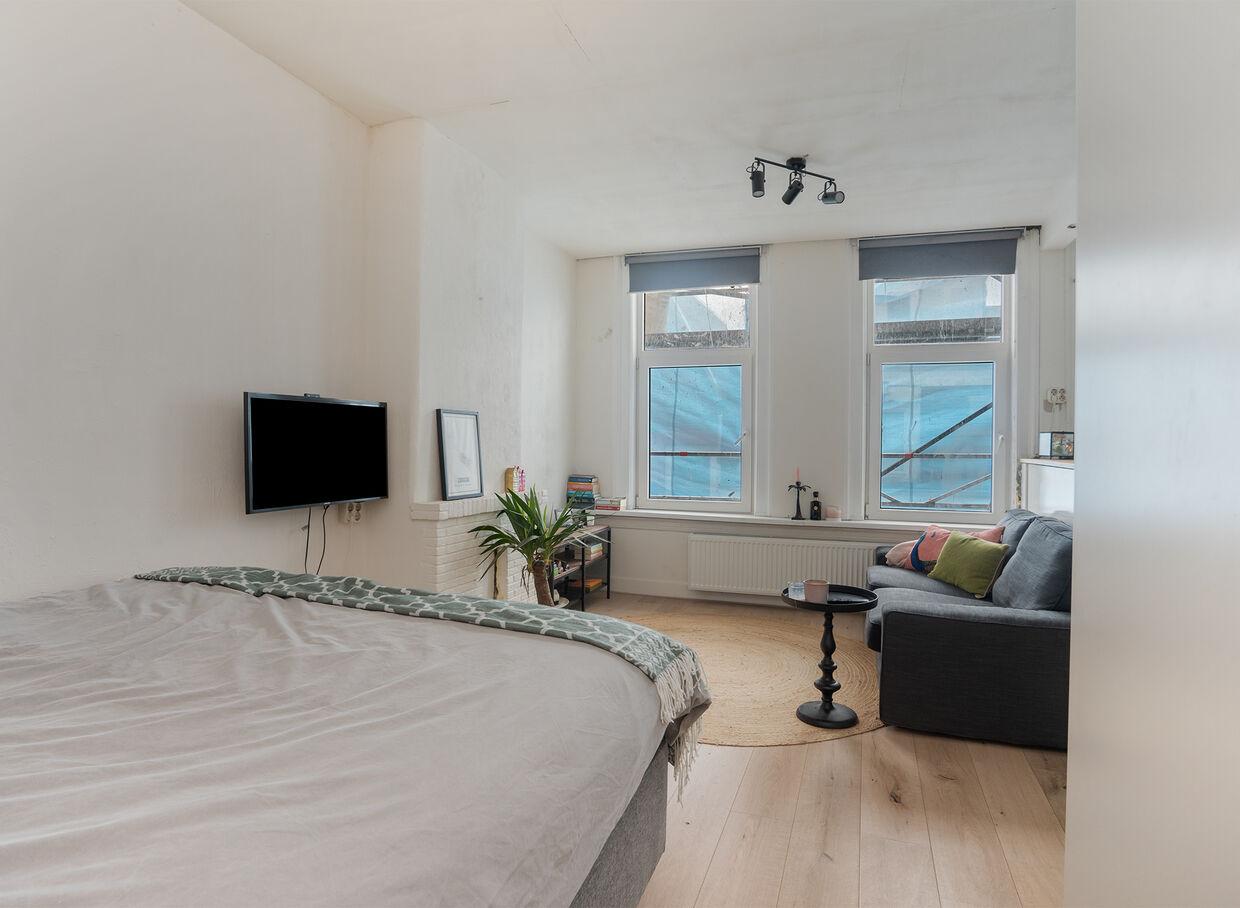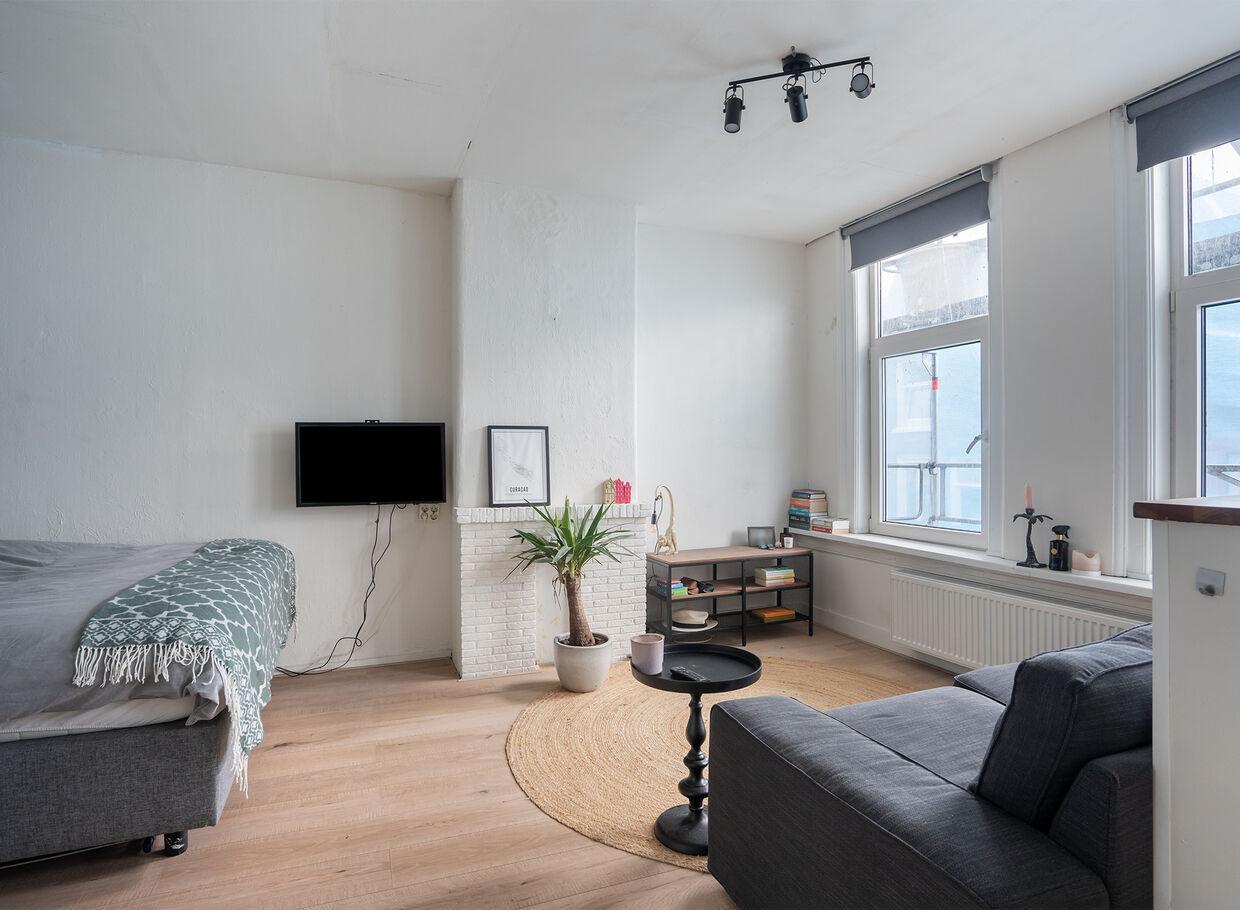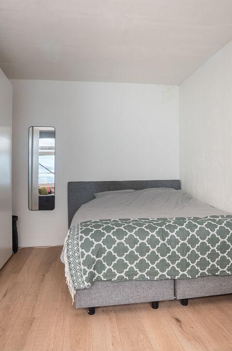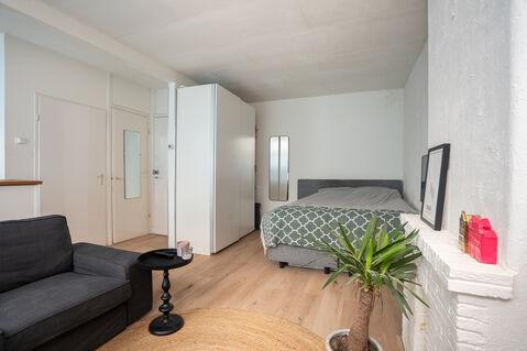 De slimme indeling van deze studio zorgt voor een duidelijke scheiding van leefruimtes. Het slaapgedeelte bevindt zich in een aparte hoek. Hier heb je voldoende ruimte voor een kledingkast en een tweepersoonsbed.