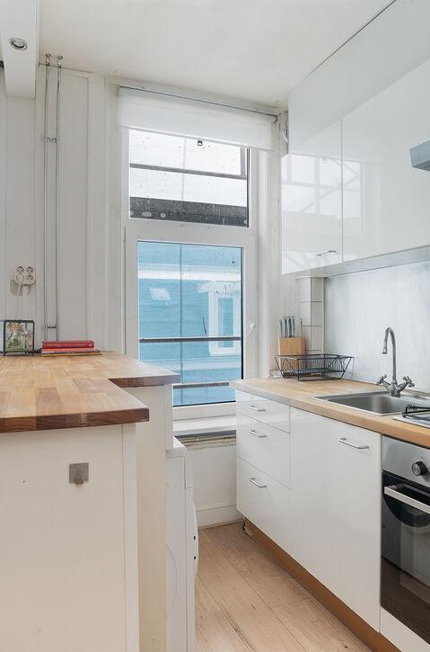 De moderne keuken is voorzien van hoogwaardige inbouwapparatuur (deels vernieuwd in 2020) die de culinaire ervaring verrijkt. Neem plaats aan de gezellige eetbar, die tevens als scheidingswand tussen de keuken en de zithoek fungeert. Ook de wasmachine vind je in de keuken.