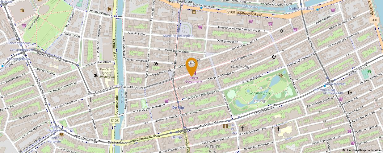This charming apartment is located on the Albert Cuyp market in the De Pijp neighborhood. While the surroundings are bustling with activity, the apartment offers a haven of tranquility. In the immediate vicinity, you'll find various dining options, including Caffè Picco, Bar Bellini, and Brasserie Lolita, alongside the