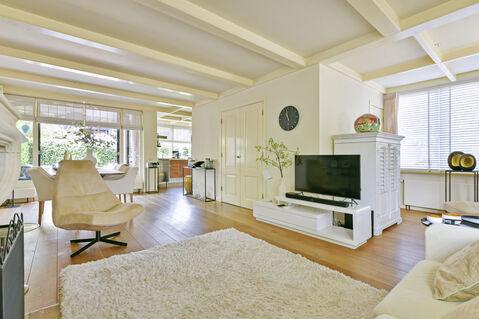 Naastdewoningisderuimegarage,welkeook geschikt is als hobbyruimte.