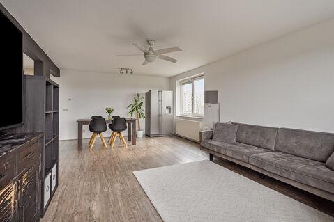 Het appartement heeft een woonoppervlakte van 93 m², wat voldoende ruimte biedt voor een individu, een stel of een klein gezin. Er zijn twee slaapkamers, wat flexibiliteit biedt voor verschillende levensstijlen, zoals het inrichten van een thuiskantoor of een gastenkamer.