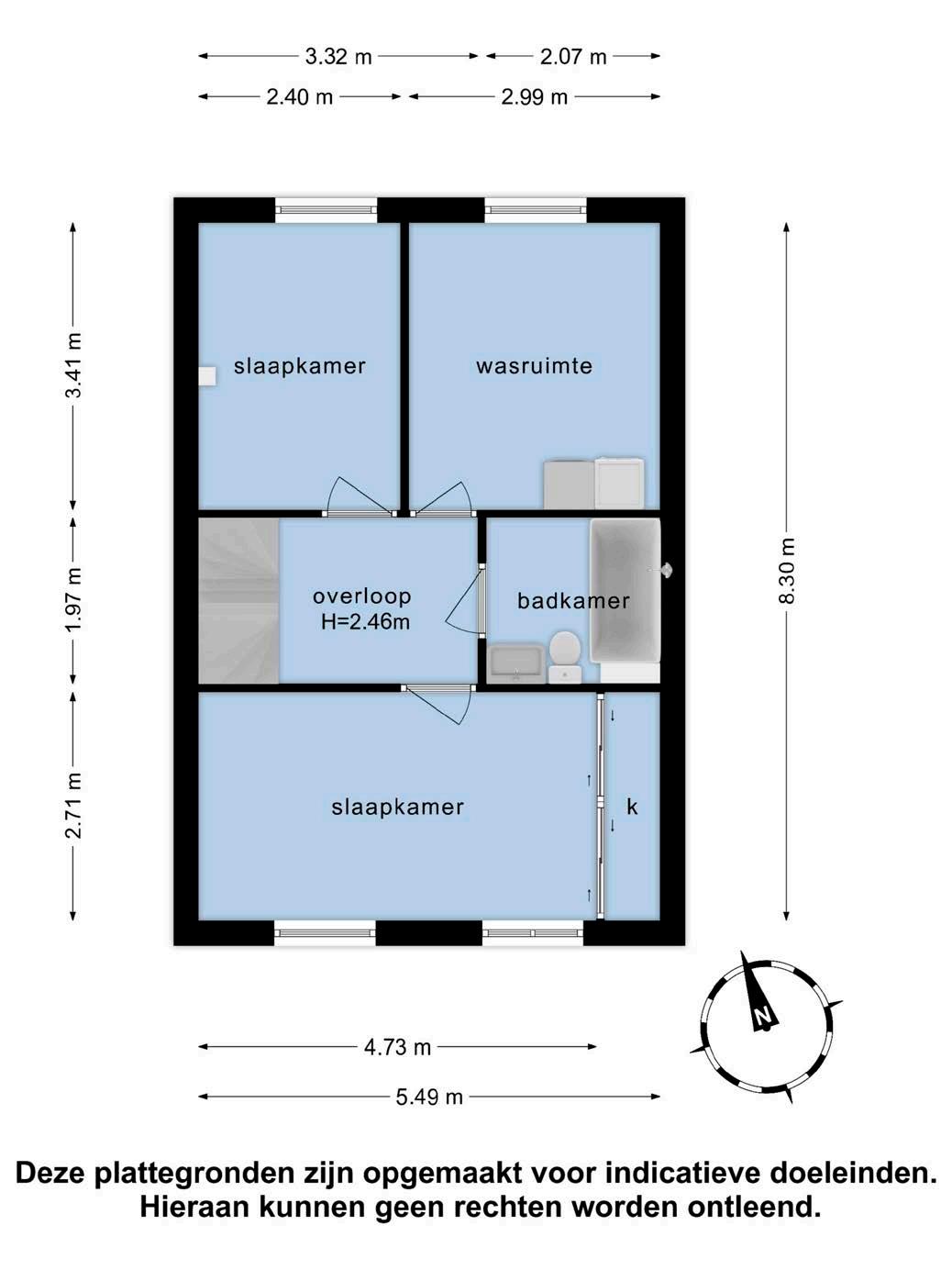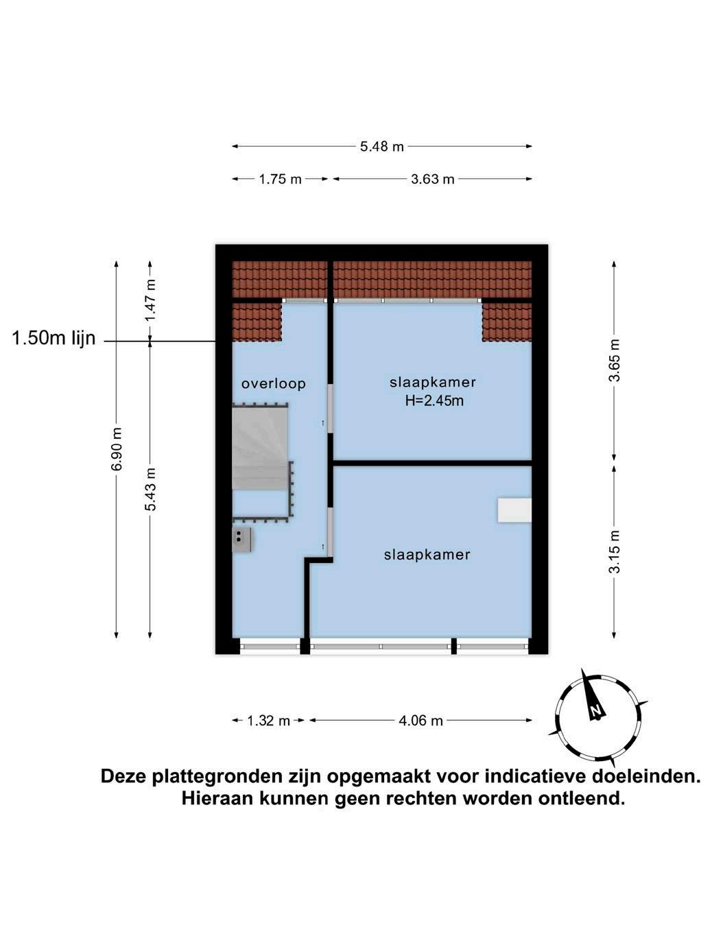 De twee slaapkamers bevinden zich aan de vooren achterzijde van de verdieping. In de slaapkamer aan de achterzijde is meer ruimte gecreëerd door het plaatsen van een dakkapel.