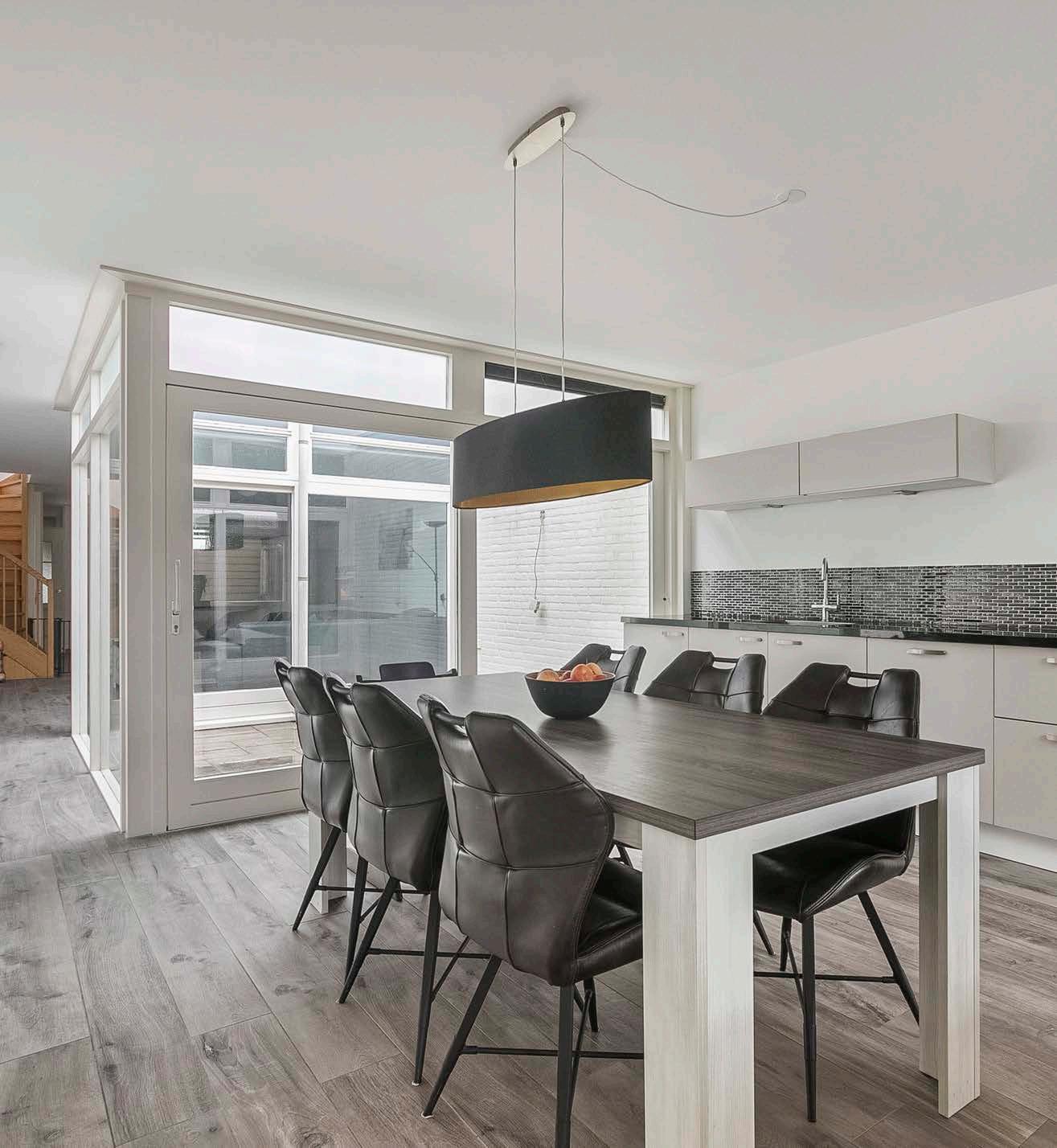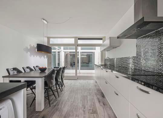 De keuken is een waar paradijs voor de hobbykok, met voldoende opbergruimte en moderne inbouwapparatuur zoals een afzuigkap, inductiekookplaat, vaatwasser, koel-vriescombinatie, Quooker en combimagnetron. De wasmachineaansluitingen zijn praktisch weggewerkt en de schuifpui naar de patio maakt het mogelijk om tijdens het koken van de buitenlucht te genieten.