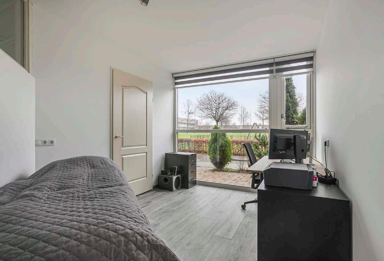 Bij binnenkomst in de hal voel je direct de ruimte en mogelijkheden die dit huis biedt. De werk-/slaapkamer aan de voorzijde is ideaal voor thuiswerkers en geeft zicht op het groene plantsoen. Deze kamer kan ook dienen als extra slaapkamer, want een wastafelaansluiting is nog aanwezig.