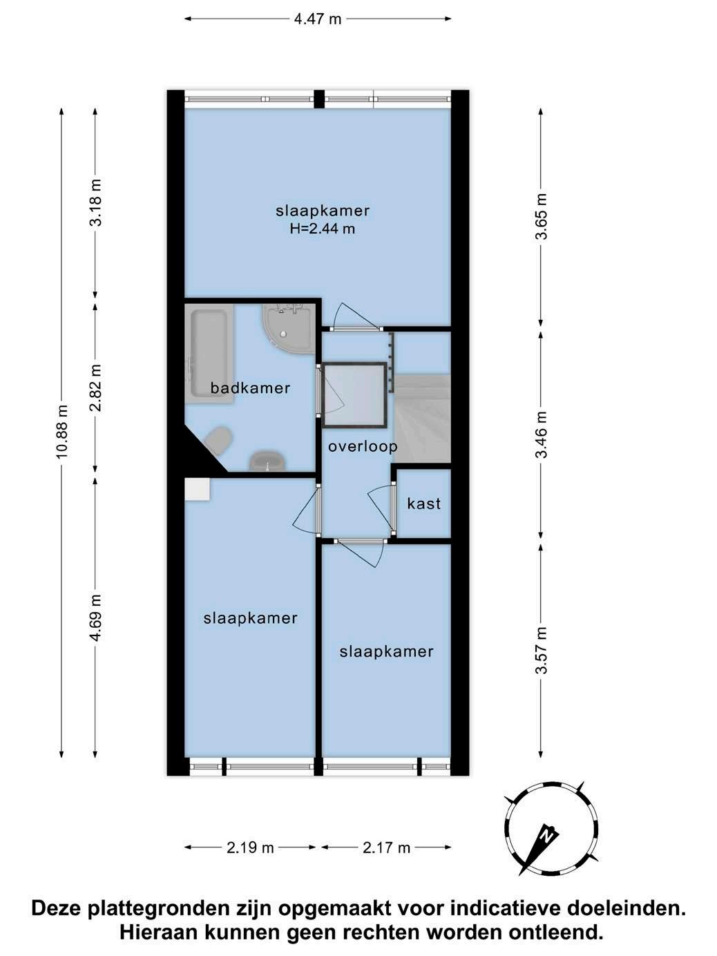 Op de eerste verdieping vindt u een overloop met een opbergkast en een lichtkoepel die voor een natuurlijke lichtinval zorgt. De twee slaapkamers aan de voorzijde en de slaapkamer aan de achterzijde zijn voorzien van laminaat en behang, klaar om naar eigen smaak ingericht te worden. De badkamer is uitgerust met een ligbad, douchecabine en wastafelmeubel, ideaal voor een ontspannen moment.