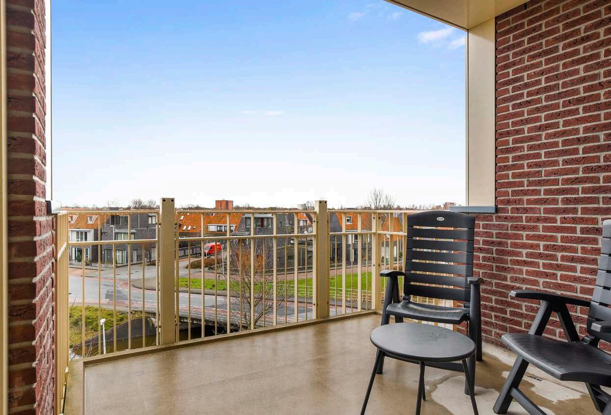 Middels de schuifpui stap je vanuit de keuken zo het fijne balkon op. Het balkon is gelegen op het zuidoosten en deels inpandig, waardoor je lekker in de luwte buiten kunt zitten. Daarnaast is er voldoende plek om een gezellig zitje neer te zetten. Geniet van het uitzicht en het buitenleven.