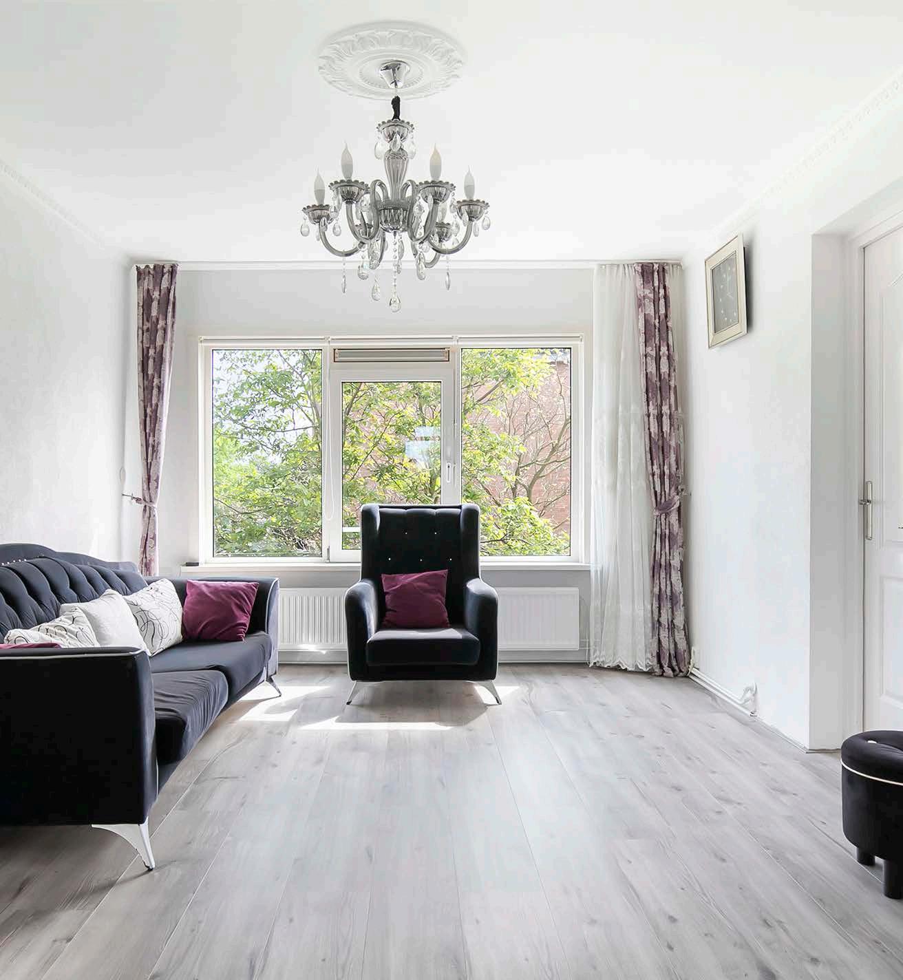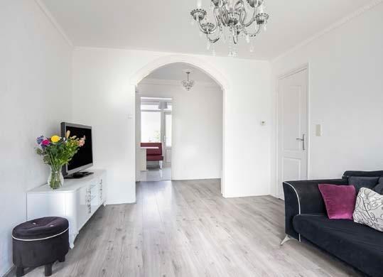 De woonkamer is heerlijk licht en voorzien van een strakke laminaatvloer en gestucte wanden waardoor het een moderne uitstraling heeft. Hier kun je comfortabel genieten met familie en vrienden. Laat je inspireren door de vele mogelijkheden die deze woonkamer biedt.