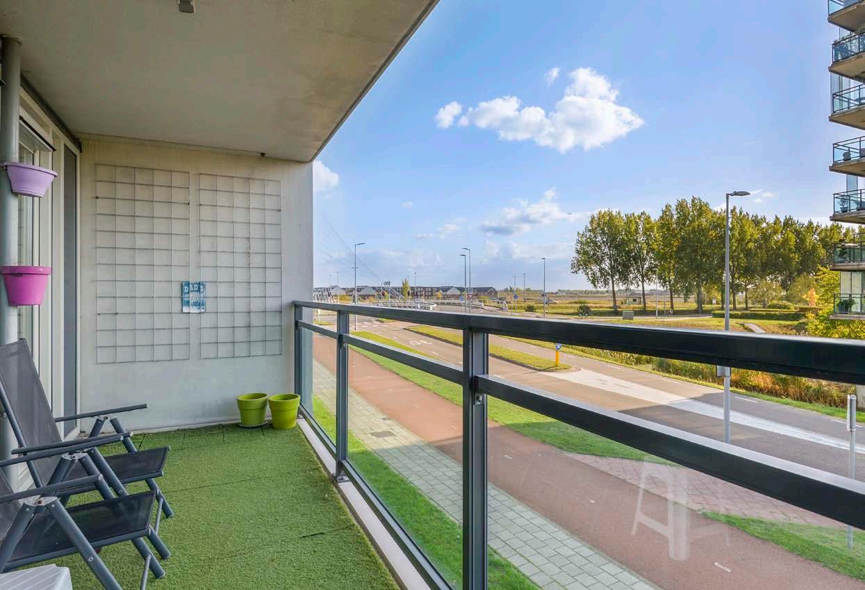 Vanuit de woonkamer stappen we door de schuifpui het zonnige balkon op het zuidwesten op. Creëer een gezellige zithoek met wat vrolijke bloembak ken en geniet van het prachtige uitzicht onder het genot van een kopje koffie. Eventjes tot rust komen!