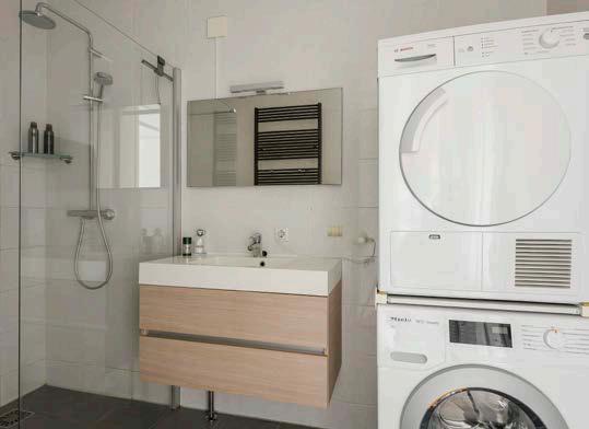 De badkamer is verzorgd afgewerkt en praktisch ingedeeld met een handdoekradiator, inloopdou che en een wastafelmeubel. Spoel de dag van je af! Tevens bevindt de wasmachine aansluiting zich hier.