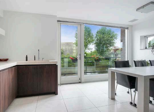 De ruime woonkeuken is voorzien van een natuurstenen werkblad, een spoelbak met douchekraan en een uitgebreid assortiment aan inbouwapparatuur, waaronder een inductieplaat met 5 zones, afzuigkap, nieuwe vaatwasser, vriezer, koelkast, combimagnetron. De keuken biedt toegang tot het zonnige terras aan het vaarwater. Het geheel is hoogwaardig afgewerkt met strak stucwerk en hoge deurposten.
