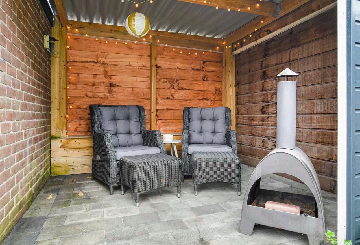 Daarnaast heb je nog de beschikking over een heerlijke overkapping waardoor je hier van vroeg in het voorjaar tot laat in het najaar van het buitenle ven kunt genieten. Verder zijn er nog een vrijstaande stenen berging met elektra en een oprit voor het parkeren van de auto met carport, ideaal!