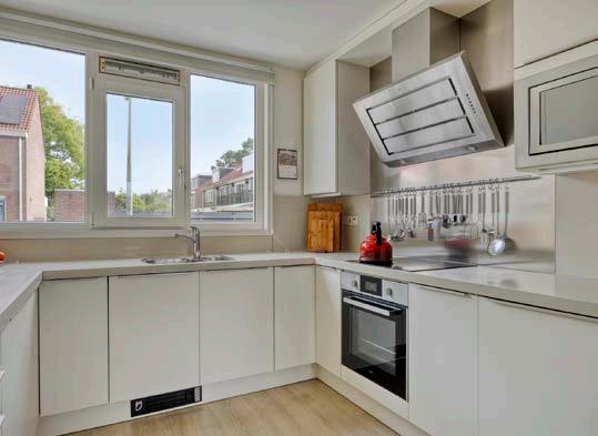 De verzorgde keuken in U-vorm biedt jou alle comfort met moderne apparatuur: een vaatwasser, inbouwkoelkast, vriezer, inductiekookplaat, oven, magnetron en afzuigkap. Het is de plek waar je met plezier heerlijke maaltijden bereidt!