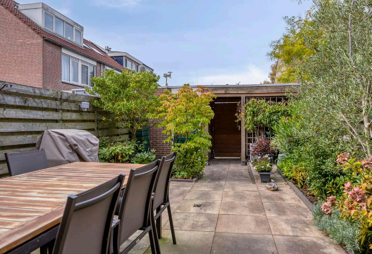 Buiten wacht de prachtige tuin op jou. Naast de elektrische zonwering kun je genieten van je eigen buitenruimte, compleet met een vrijstaande stenen berging voorzien van elektriciteit – perfect voor het opbergen van fietsen, tuinmeubilair of andere spullen.