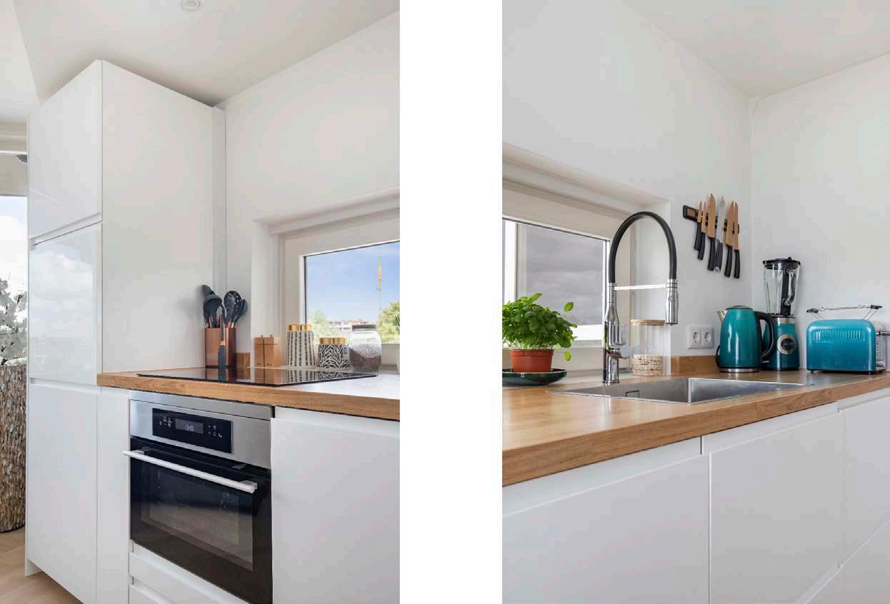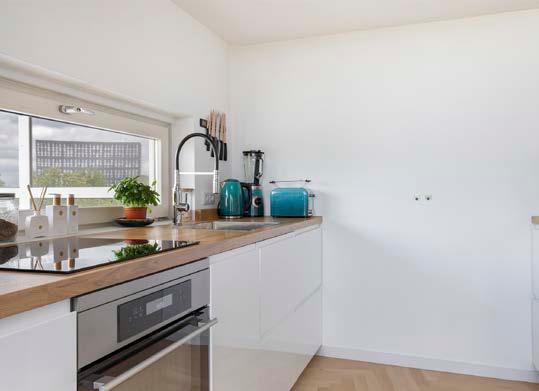 De moderne open keuken is ook een echte eyecatcher, met diverse inbouwapparatuur zoals een inductiekookplaat, afzuigkap, combi-oven, vaatwasser en een koel-/vriescombinatie. Er is ook een barretje waar je gezellig aan kunt eten.