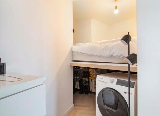 Voor het slapen is er een aparte ruimte gerealiseerd, zo is er toch de nodige privacy. Hier bevindt zich tevens een aansluiting voor de wasapparatuur.
