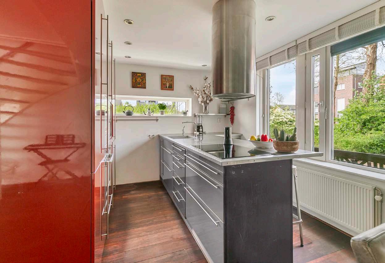 De keuken heeft roestvrijstalen aanrechtblad, Boretti oven, Quooker en overige inbouwapparatuur.