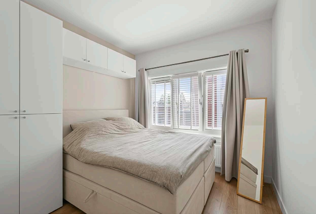 De slaapkamer is ruim genoeg voor een comfortabel tweepersoonsbed en beschikt over een op maat gemaakte kast zodat alle spullen uit het zicht blijven. Het is een rustige plek waar je elke ochtend uitgerust wakker wordt, klaar om de dag te beginnen.