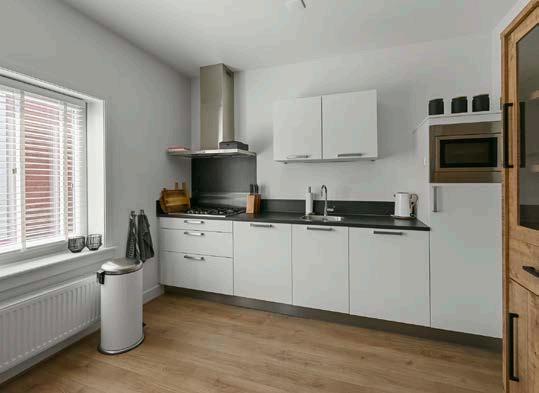 De moderne keuken, uitgerust met alle benodigde apparatuur, biedt je de mogelijkheid om uitgebreid te koken — of je nou je favoriete pastagerecht wilt maken of even snel een pannenkoek wilt bakken.