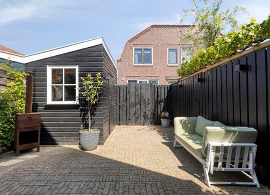 Het perceel van 85 vierkante meter biedt ruimte aan een knusse buitenplek waar je in de lente heerlijk kunt genieten van een kopje koffie in de zon. Hier, omringd door groen, is het moeilijk voor te stellen dat je op loopafstand zit van de stadse levendigheid.