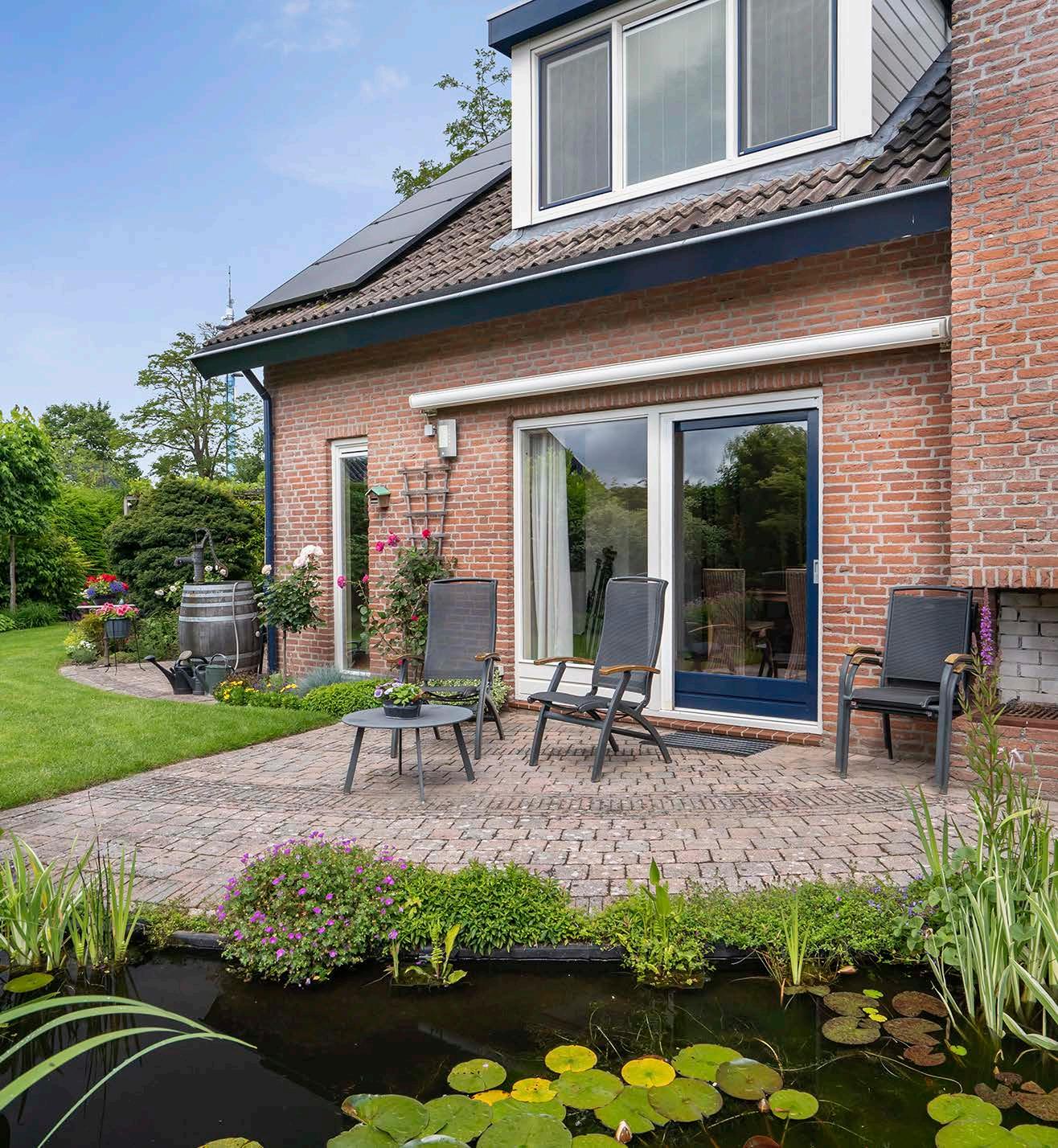 Wij wonen al 27 jaar met veel plezier op de Brugmark, waarvan bijna 20 jaar in onze huidige woning. Ons huis staat vrij en heeft een prachtige tuin rondom, met diverse terrassen waar je altijd een zon- of schaduwplekje kunt vinden. Dankzij de schuifpui op het zuiden kun je in de wintermaanden al genieten van de warmte van de zon die naar binnen schijnt. In de lente kun je al snel genieten van de tuin en vijver. Het hele jaar door zijn er veel vogels in de tuin te vinden.