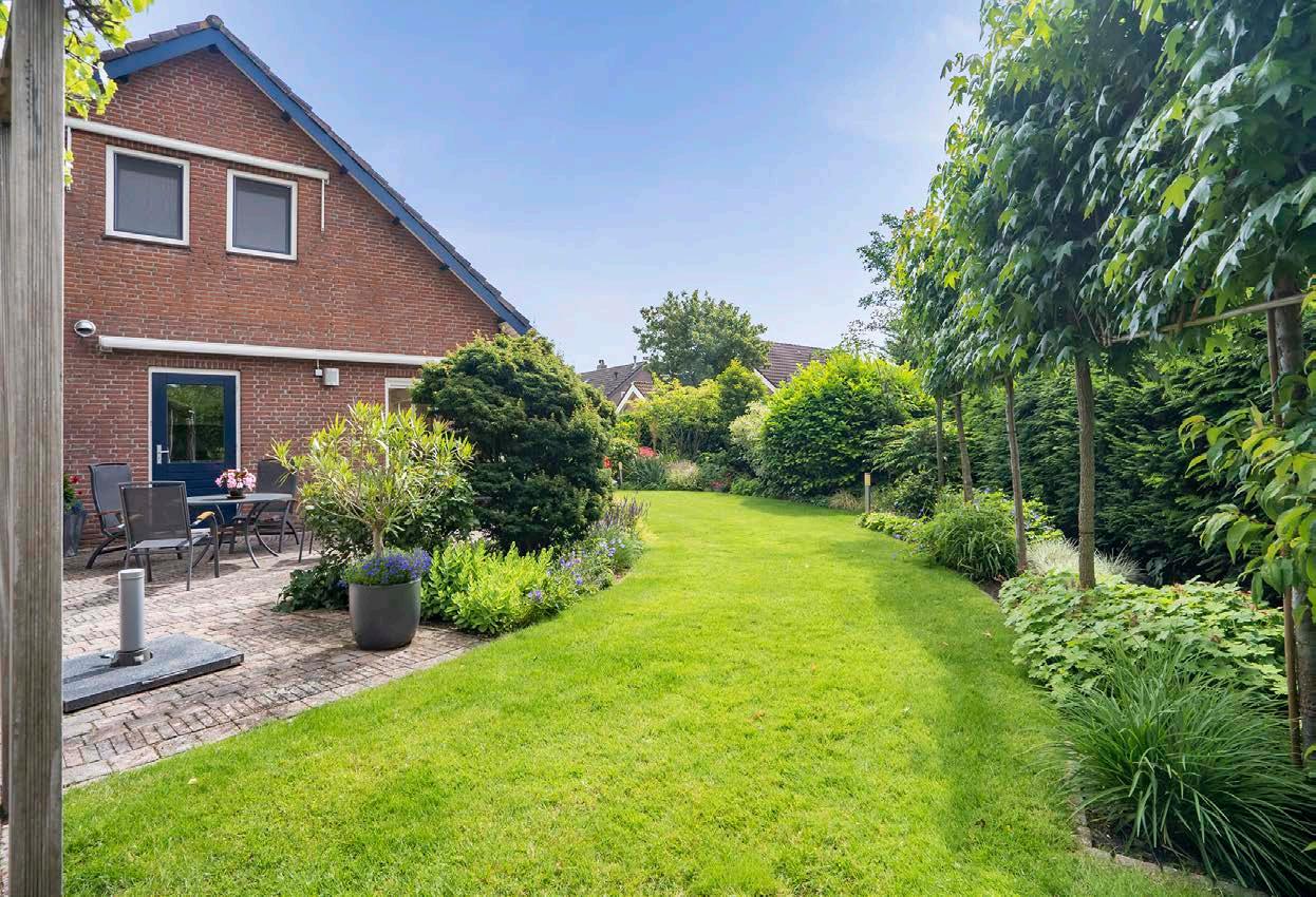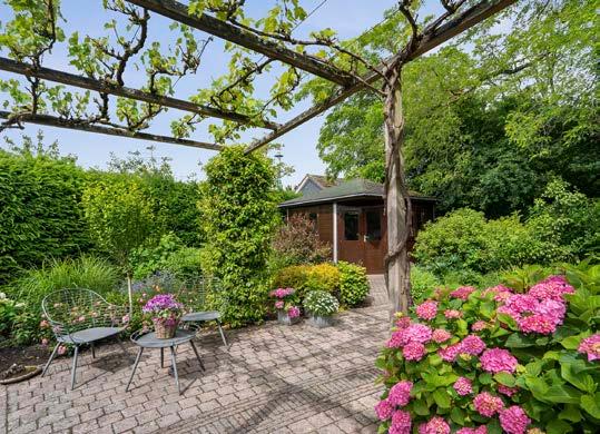 De tuin rondom deze woning, grotendeels gelegen op het zuiden, is een oase van rust en groen. Met een ruime kavel van 703 m² biedt de tuin zowel zonals schaduwrijke plekken, perfect voor elke gelegenheid. De tuin is fraai aangelegd met bestrating, gras, beplanting en een vijver. In de hoek van de tuin bevindt zich een vrijstaande houten schuur uit 2009, voorzien van elektra, ideaal voor opslag van tuinmeubilair en gereedschap. De tuin beschikt verder over elektrische zonneschermen, een open haard/ barbecueën en buitenkranen. De tuin ook is via een poort toegankelijk.
