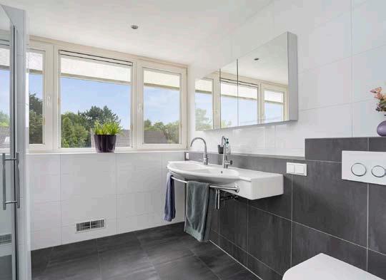 De badkamer, gerenoveerd in 2011, is een luxe toevoeging aan het huis. Dankzij de dakkapel heb je hier voldoende ruimte en fijne lichtinval. De badkamer is uitgerust met een moderne douchecabine, een dubbele wastafel, een toilet en elektrische vloerverwarming. De woning wordt verwarmd middels een luchtverwarmingssysteem, aangesloten op een hybride warmtepomp en CV-ketel.