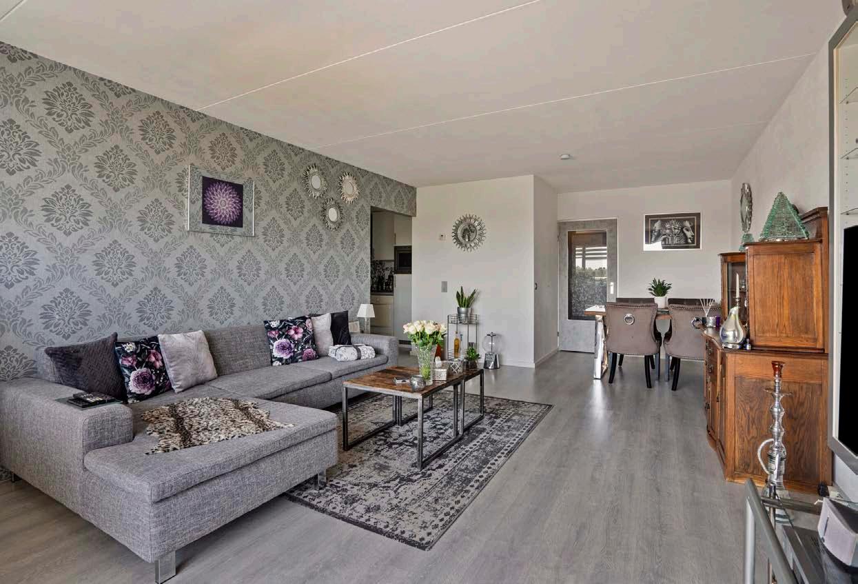 De ruime woonkamer biedt een zee van licht, dankzij de grote ramen die de kamer baden in natuurlijk daglicht. Hier kun je ontspannen na een lange dag, een boek lezen of samen met vrienden genieten van een gezellig avondje.