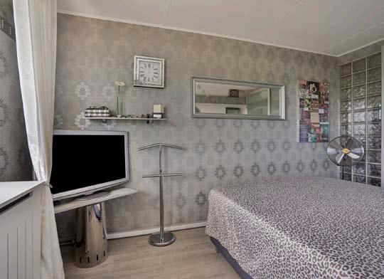 De slaapkamer is een oase van rust, met genoeg ruimte voor een comfortabel tweepersoonsbed en een grote kledingkast. Hier word je elke ochtend verfrist wakker, klaar om de dag te beginnen.