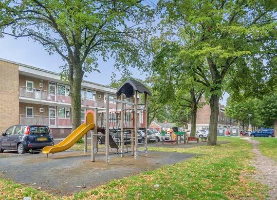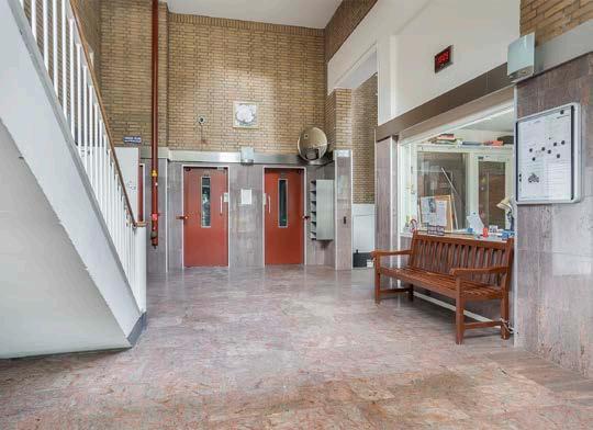Je komt het verzorgde complex binnen via de gemeenschappelijke entree.Je vindt hier zowel de liften als het trappenhuis en toegang tot de eigen berging. Dit zorgt ervoor dat het complex toegankelijk is voor iedereen.